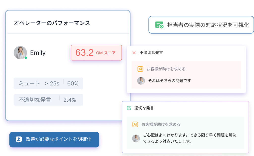 オペレーターのパフォーマンスデータを 明確で実行可能な改善施策へと変換。